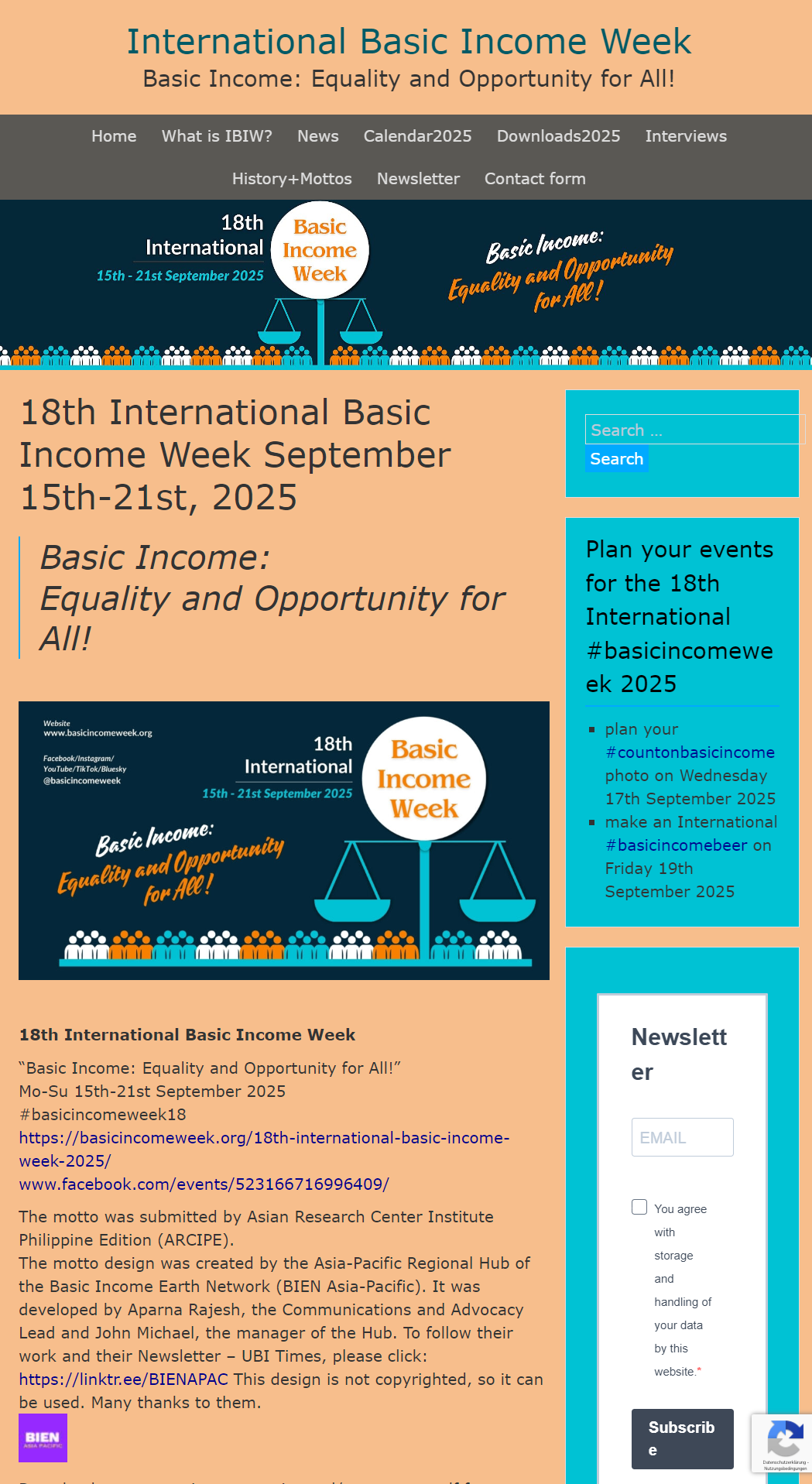 History and Mottos of International Basic Income Week (IBIW) https://basicincomeweek.org/history/